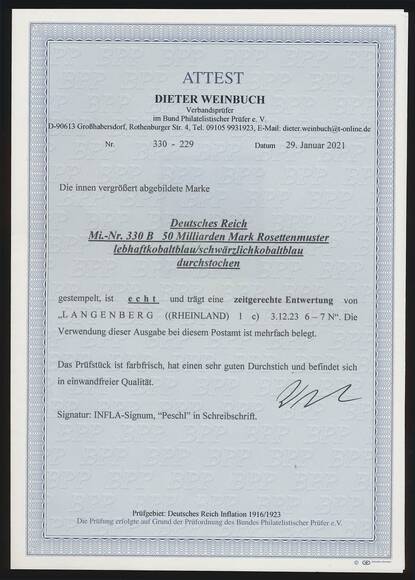 Gepr. Infla Berlin, Peschl und gepr. Weinbuch mit Fotoattest (2021)