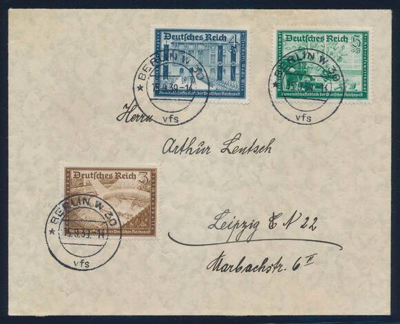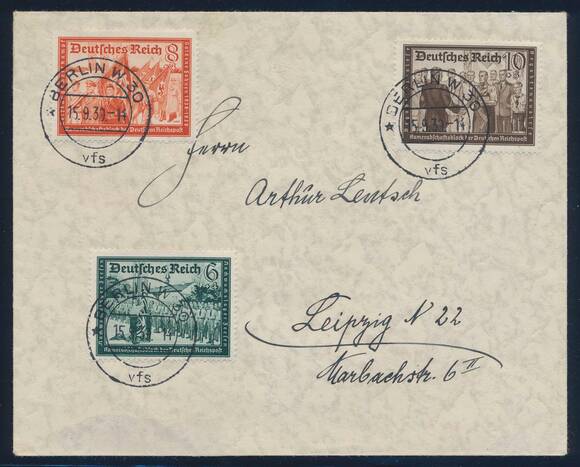 Verteilt auf vier nach Leipzig adressierten Briefumschlagen, jede Marke entwertet mit EST der Versandstelle 'BERLIN W30 vfs 15.9.39'