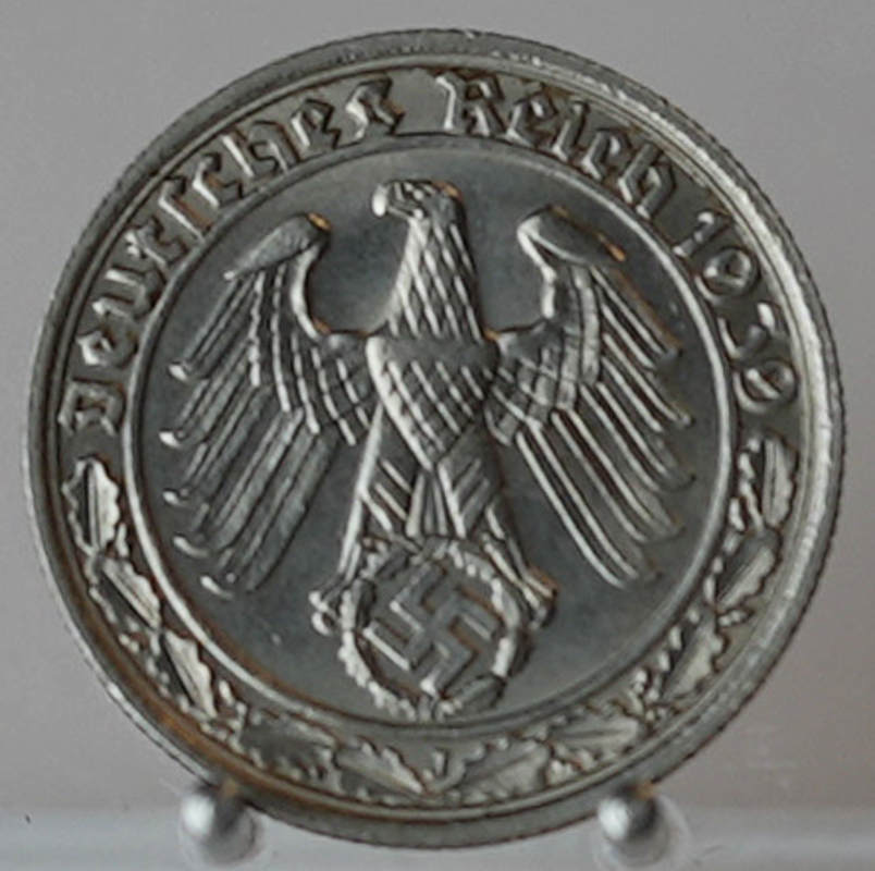 DRITTES REICH 50 Reichspfennig 1939 J, Jaeger 365