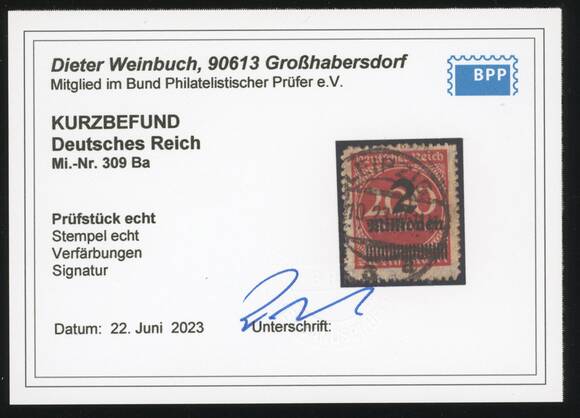 Deutsches Reich 1923 MiNr. 309 B a