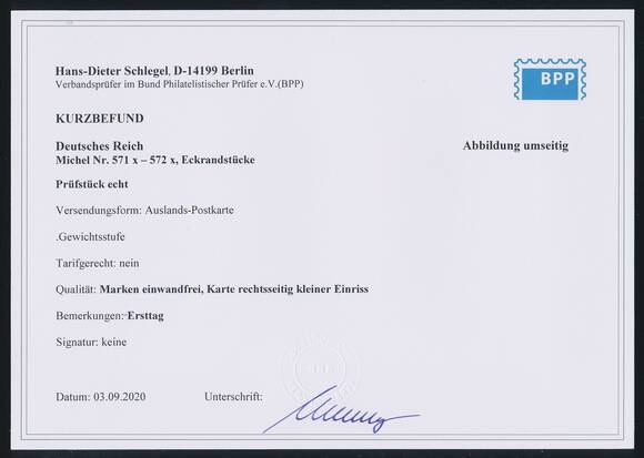 Gute Ersttagskarte, Fotokurzbefund Schlegel