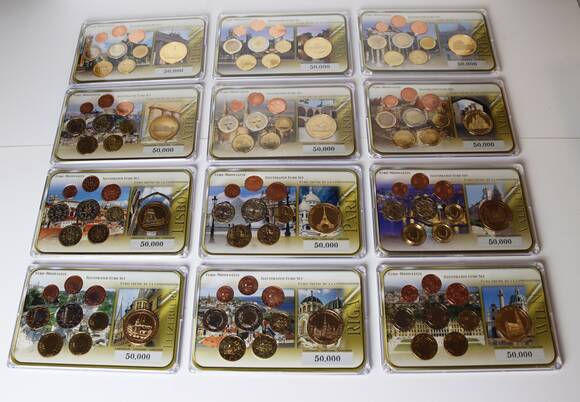 Schöne Sammlung mit 12 Stück sogenannte Euro-Motivsätze, jeweils sehr attraktiv gestaltet