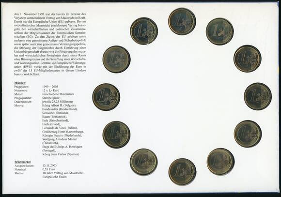 EUROPÄISCHE UNION 2000/2003 Numisbrief 10 Jahre Vertrag von Maastricht