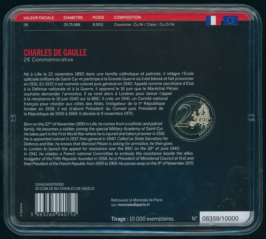 FRANKREICH 2 Euro 2020 Charles de Gaulle Coincard