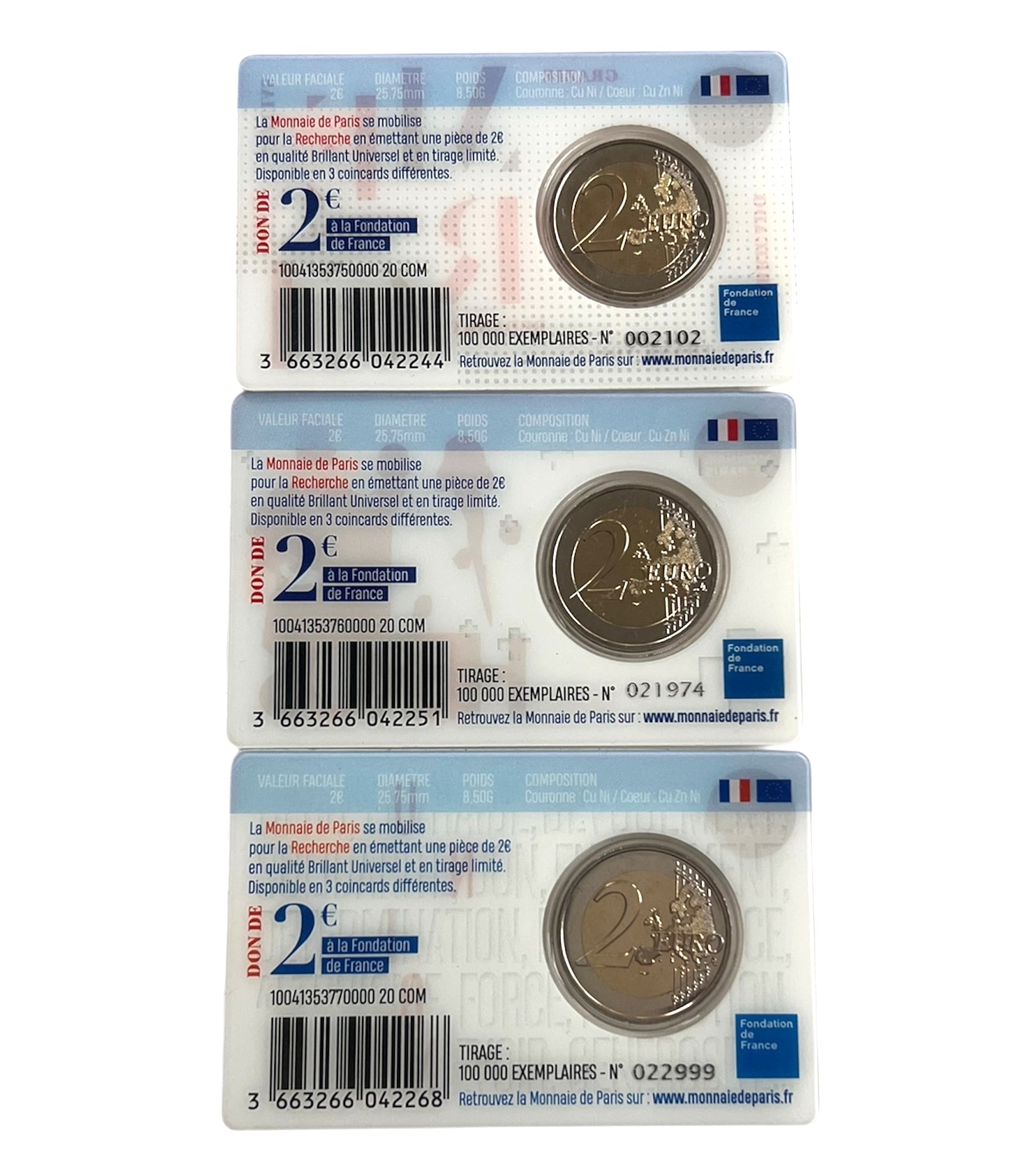 FRANKREICH 2 Euro 2020 Set mit drei Coincards Medizinische Forschung