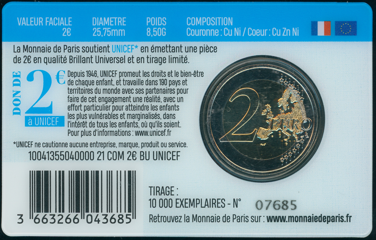 FRANKREICH 2 Euro 2021 75 Jahre UNICEF Coincard