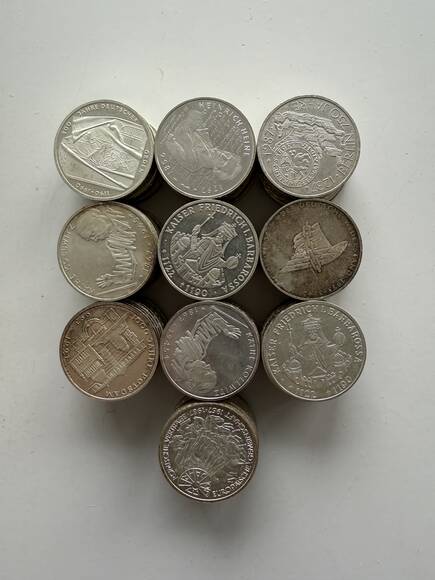 Unser Angebot richtet sich an Silberanleger. Die Münzen sind zumindest in sehr schöner Erhaltung, zum Teil lagerungsbedingt angelaufen, teils stärker angelaufen, was den Silbergehalt in keiner Weise beeinträchtigt.
