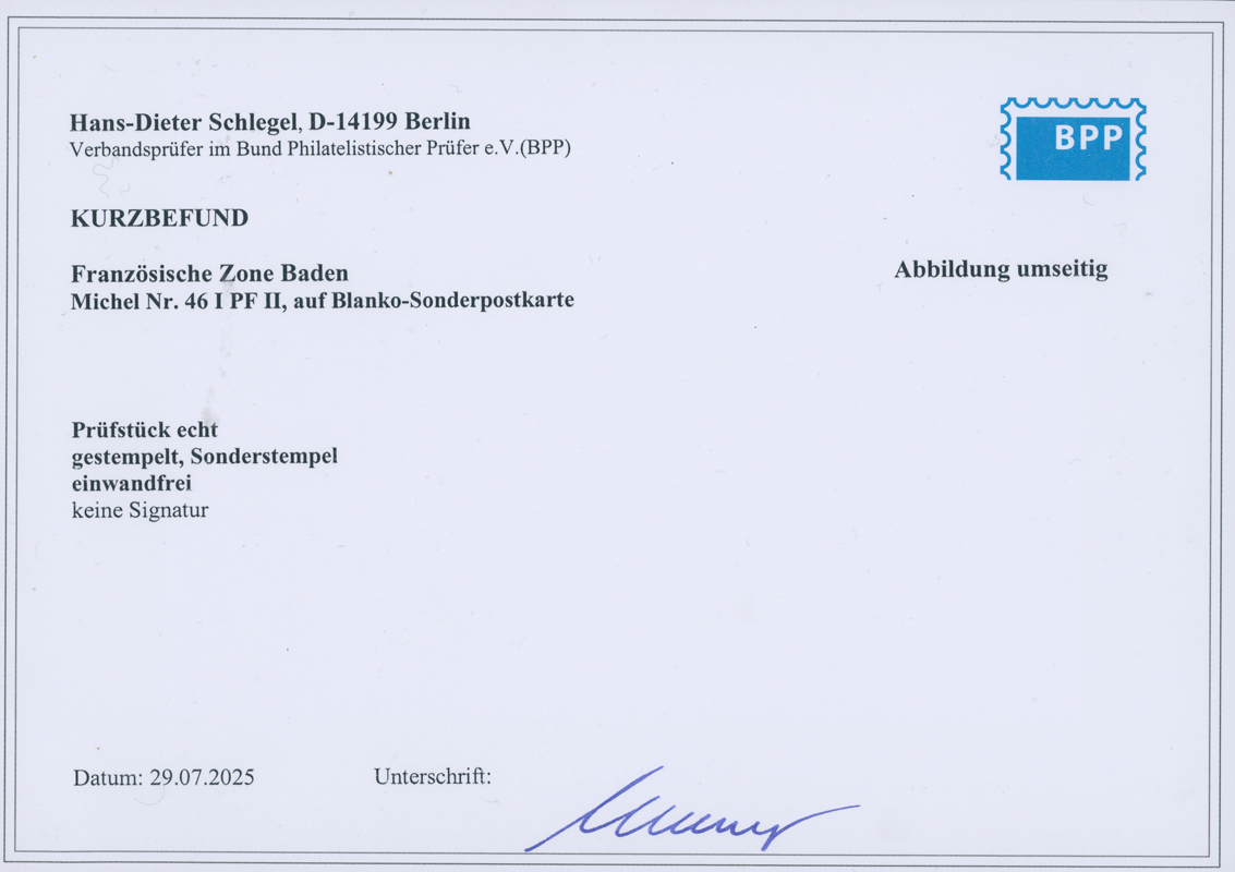 FZ BADEN MiNr. 46 I PF II, guter Plattenfehler auf amtlicher Karte