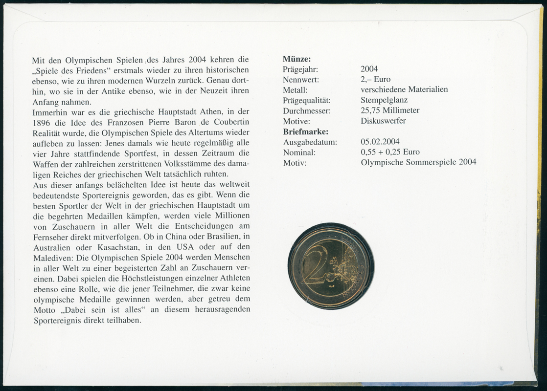GRIECHENLAND 2004/2004, Numisbrief Olympische Spiele Athen