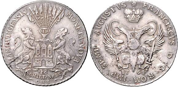 HAMBURG Speciestaler zu 48 Schilling 1764 OHK