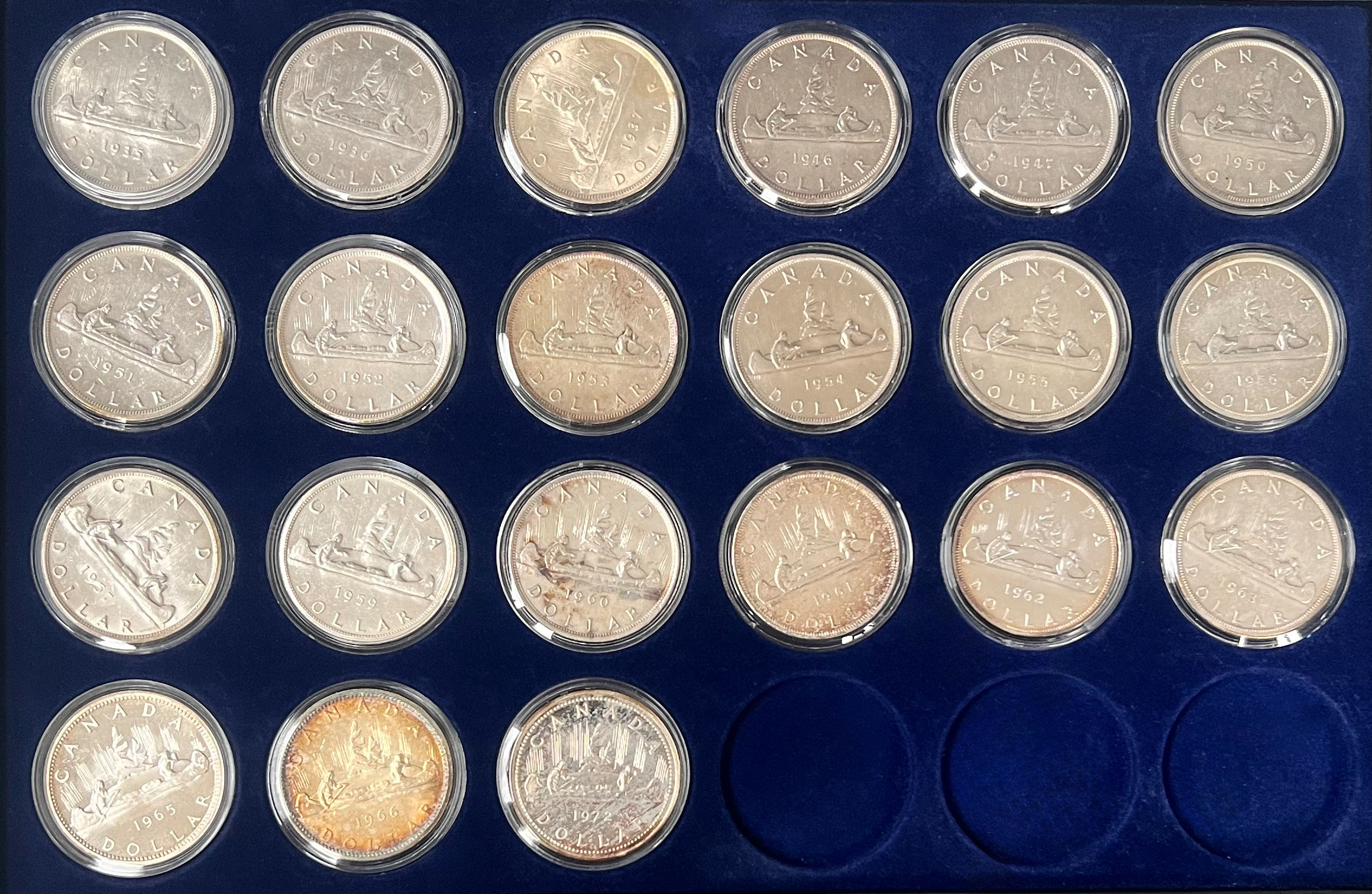 Sammlung mit 21 Stück des kanadischen Silberdollars mit dem Motiv