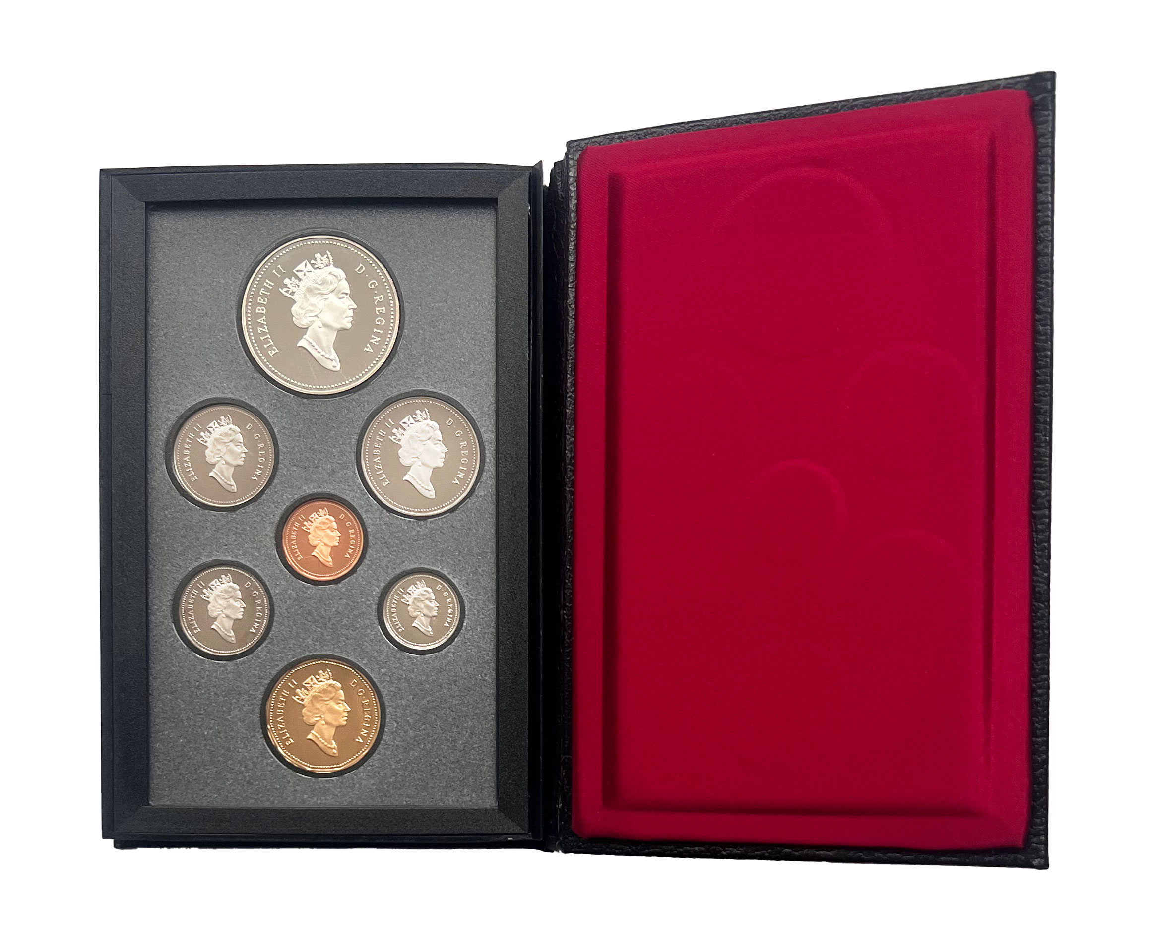 Das Proofset enthält sieben Münzen in Polierter Platte