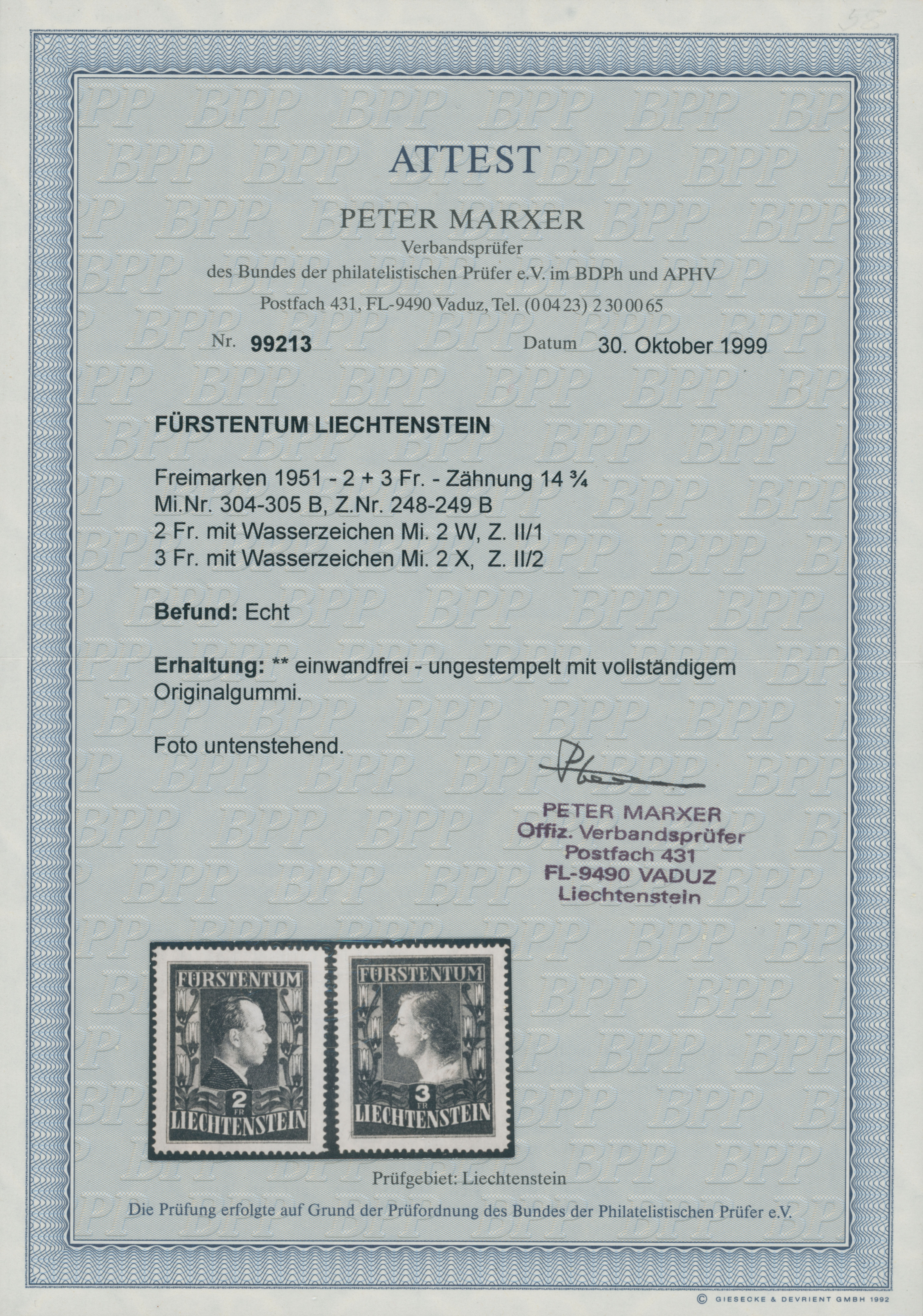 LIECHTENSTEIN 1951 MiNr. 304-305 B