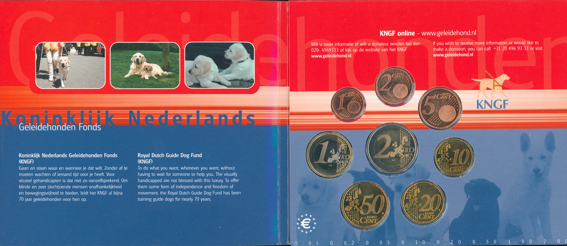 NIEDERLANDE 2002 Euro-Kursmünzensatz Blindenhunde