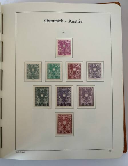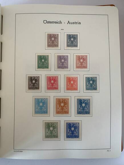 Ohne die anfänglichen Aufdruckwerte aus dem Jahr 1945 komplett postfrische Qualitätssammlung Österreich von 1945-1990