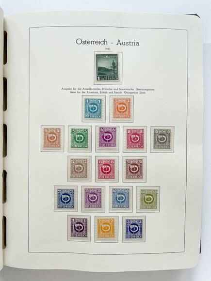 Ohne die anfänglichen Aufdruckwerte aus dem Jahr 1945 komplett postfrische Qualitätssammlung Österreich von 1945-1999