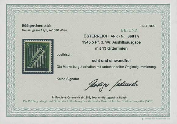 1945, 3. Wiener Aushilfs-Ausgabe, 5 Pfg., grün, glatte Gummierung