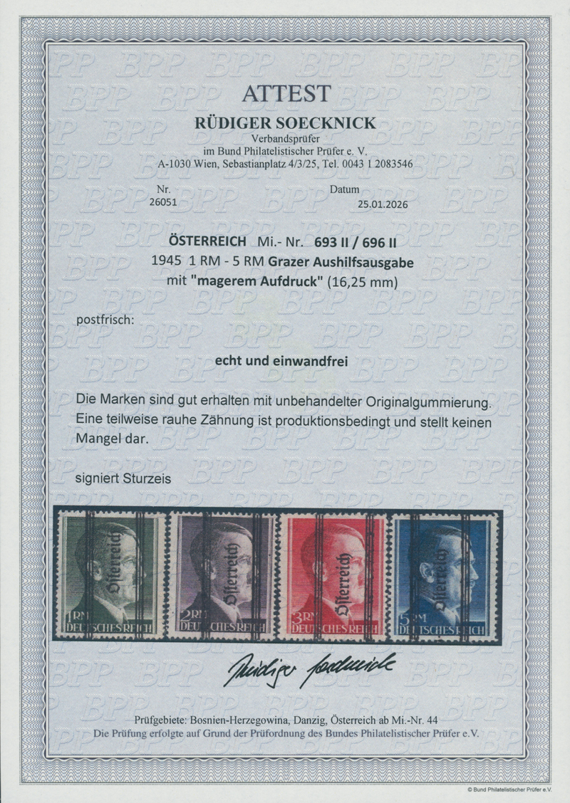 1945, Grazer Ausgabe, Markwerte, 4 Werte komplett