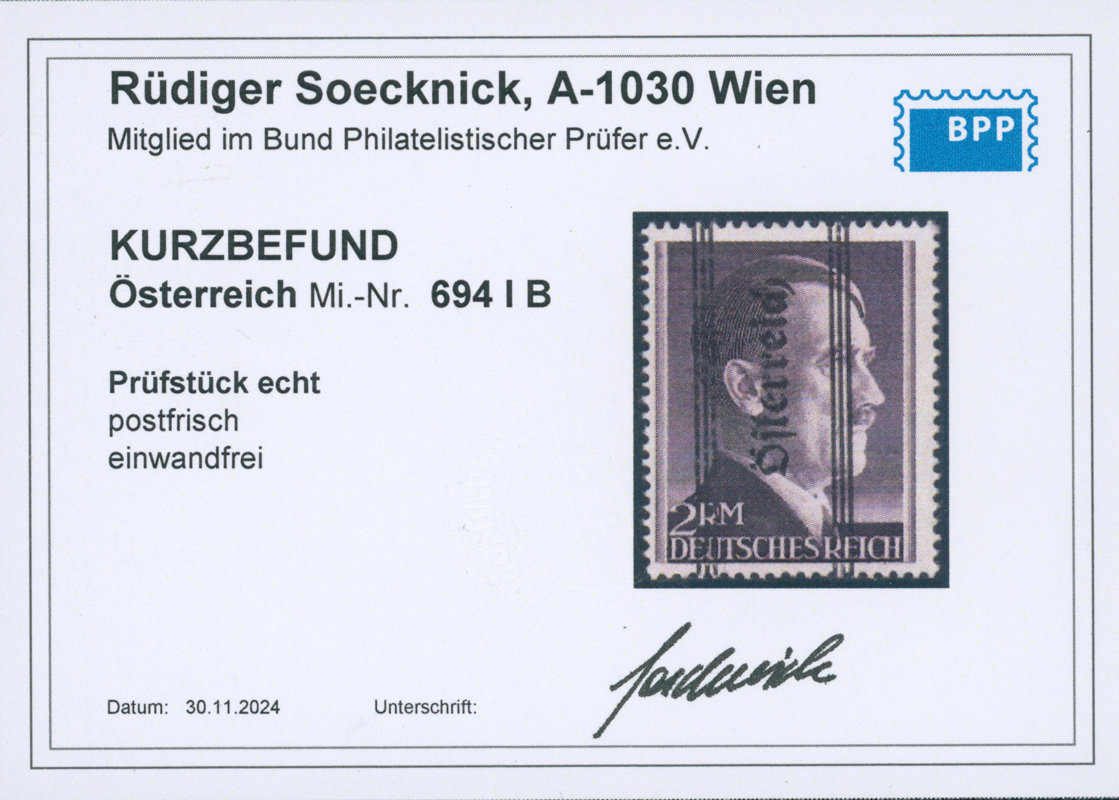 Tadellos postfrisch - Fotokurzbefund Soecknick