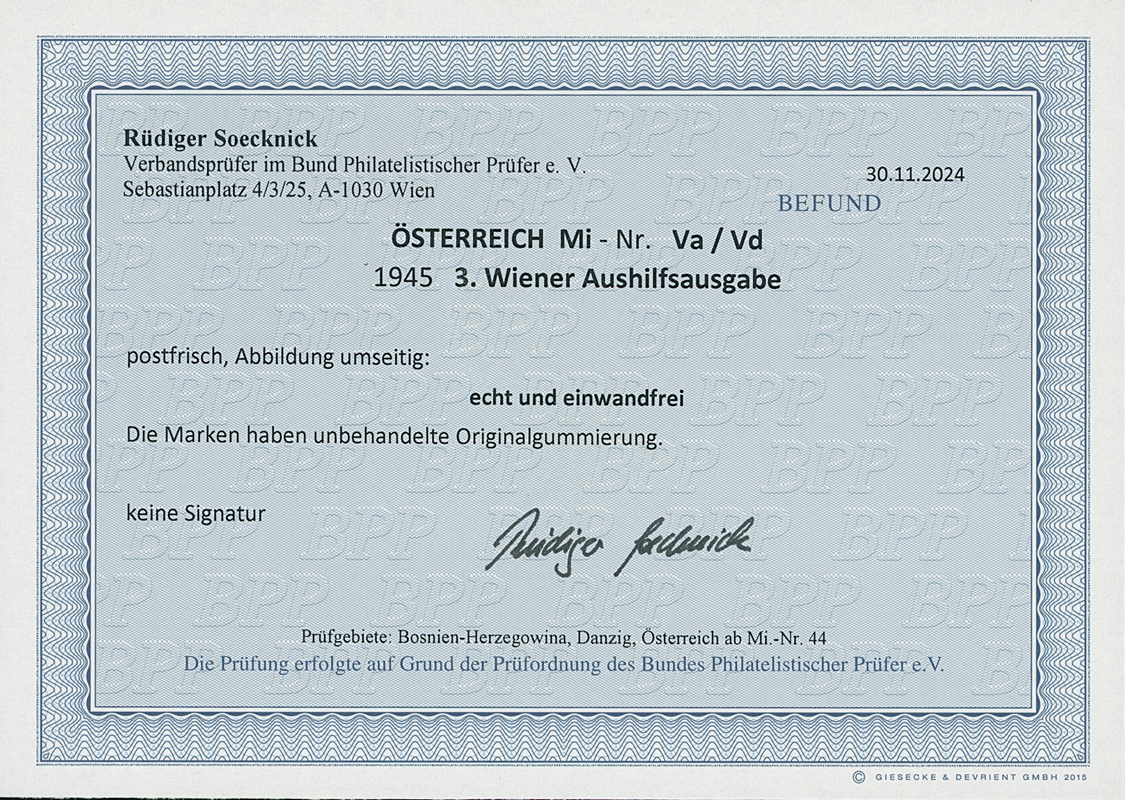 1945, 3. Wiener Aushilfsausgabe, unverausgabte Markwerte