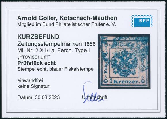 ÖSTERREICH ZEITUNGSSTEMPEL MiNr. 2 X I/I a