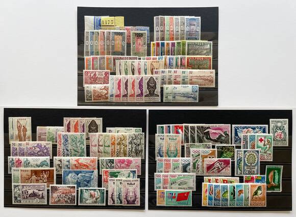 Anfangs ungebrauchte und später meist postfrische Partie Togo auf drei Steckkarten mit verschiedenen Einzelmarken, Teil- und Komplettsätzen