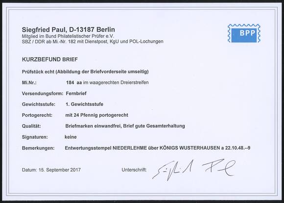 SBZ 1948 MiNr. 184 aa Dreierstreifen