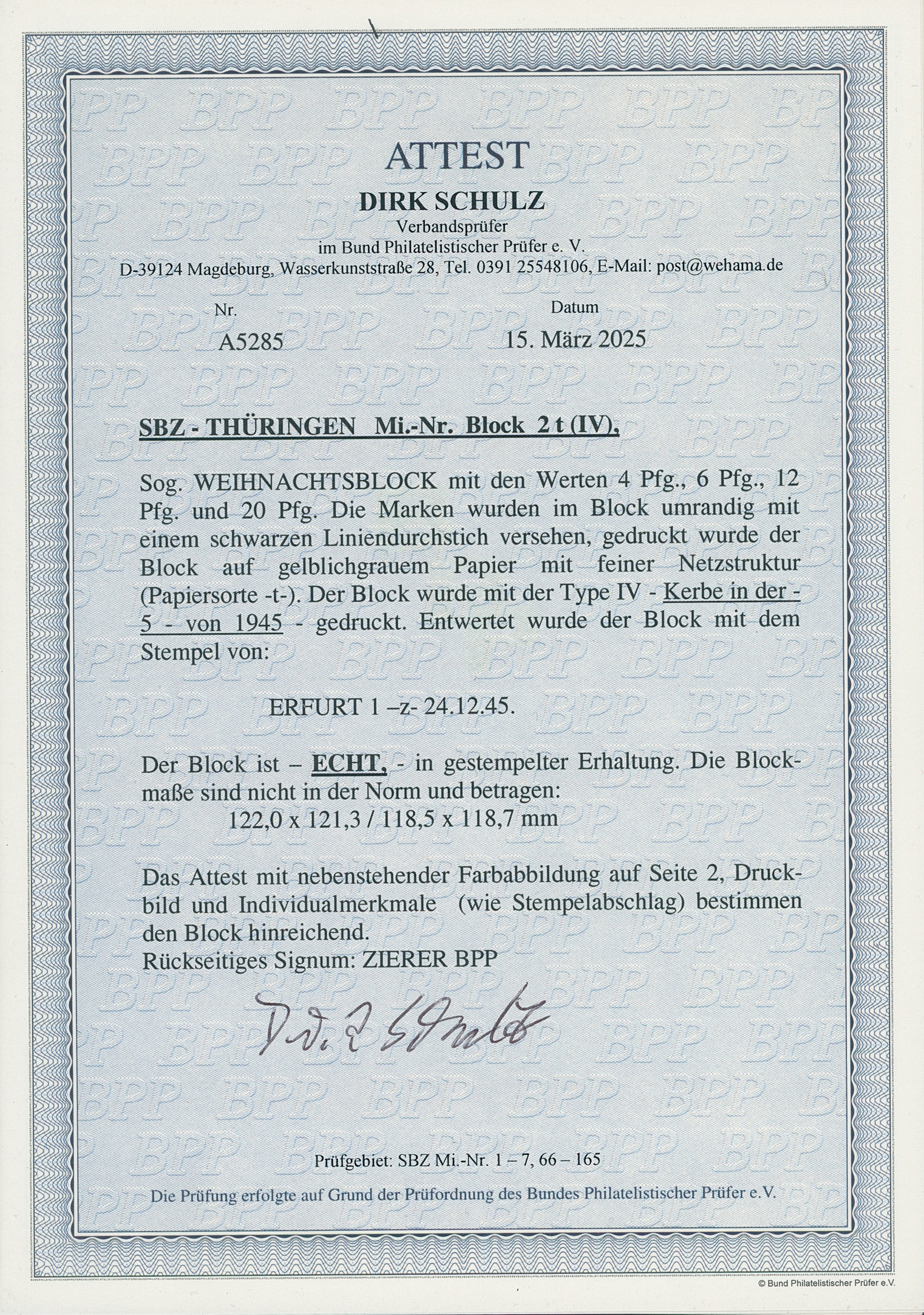 Gepr. Schulz mit Fotoattest