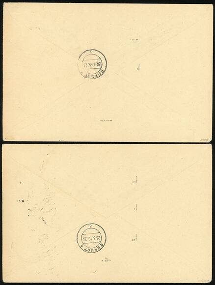 Jeder Block mit Zusatzfrankatur auf portogerechtem R-Ersttagsbrief der 2. Gewichtsstufe mit EST von 'NORDHAUSEN 1b 27.3.46', nach Erfurt mit Ankunftsstempel
