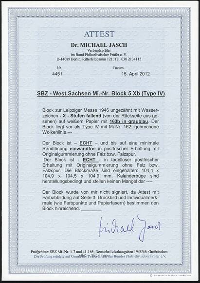 1946, Leipziger Messe, Blockausgabe, Type IV