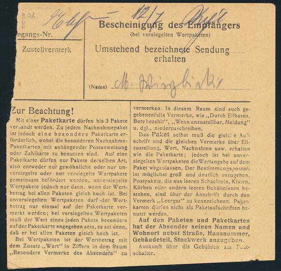 Erhaltung: Paketkarte