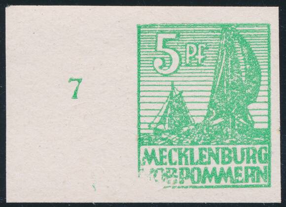 Mit gutem Plattenfehler 'linke untere Ecke schräg gebrochen, V von Vorpommern stark beschädigt'