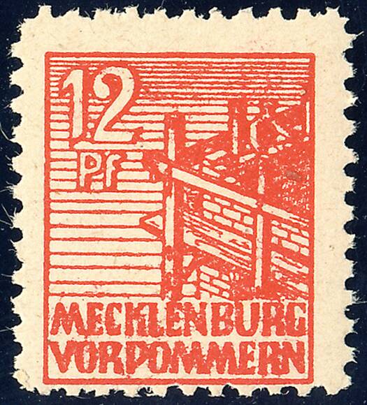 1946, Abschied, mattgraugelboranges Papier, 12 Pfg., rot