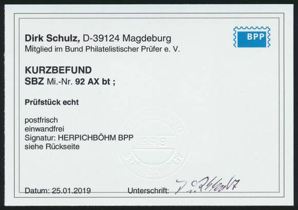 Tadellos postfrisch, Fotokurzbefund Schulz