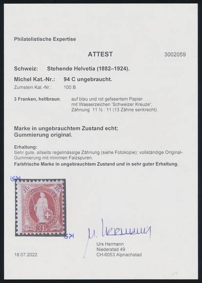 Fotobefund Renggli (als postfrisch) und gepr. Hermann mit Fotoattest