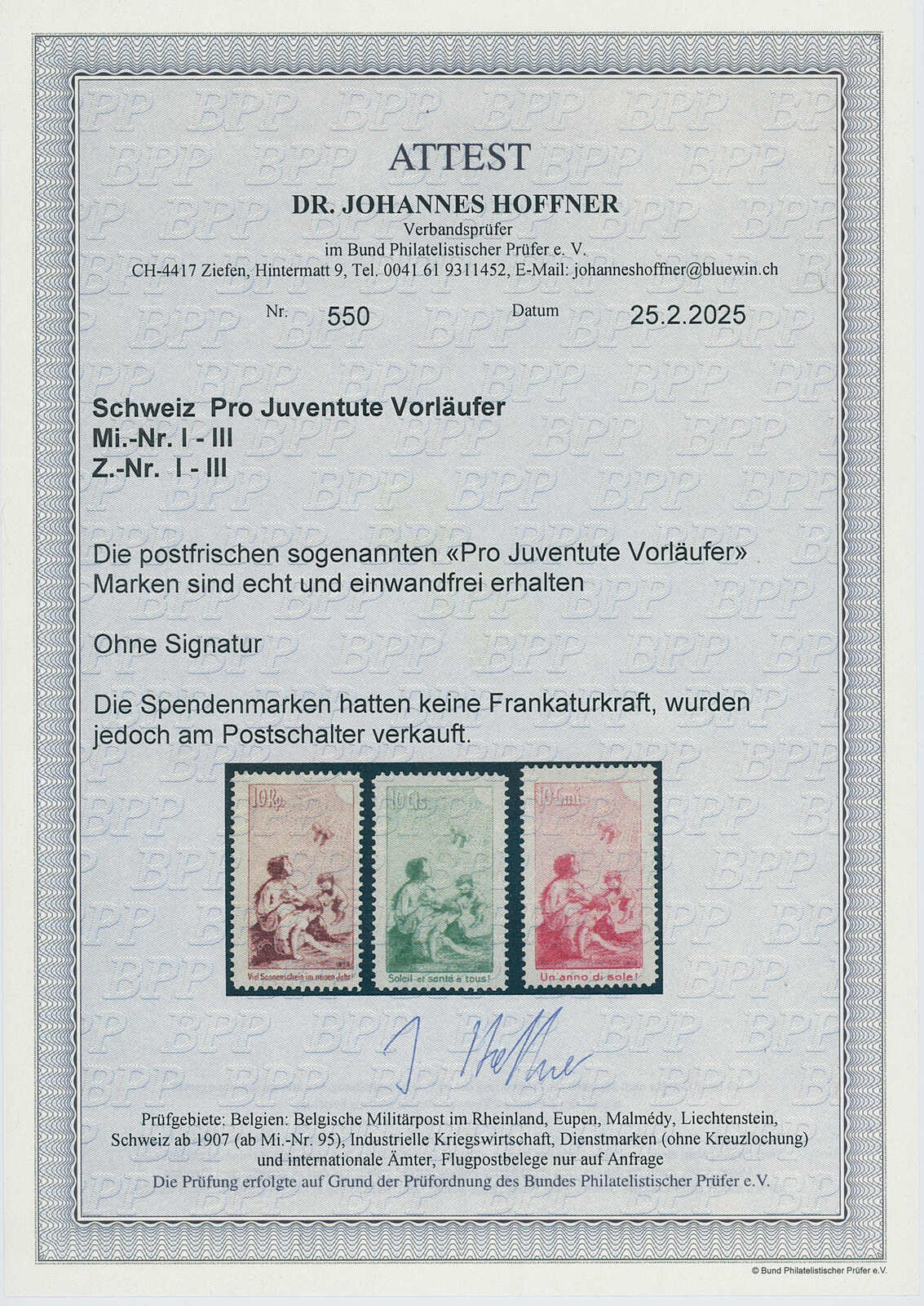 SCHWEIZ 1912 MiNr. I-III Pro Juventute Vorläufer