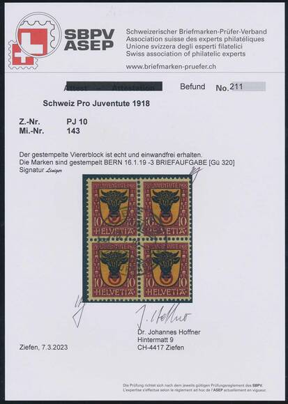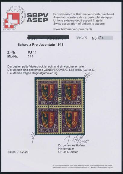 , Mi. Viererblocks nicht gelistet, SBK J10/11 CHF 770,--.