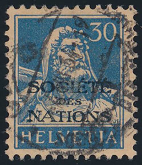 1932, Völkerbund, Tell, 30 Rp., dunkelgrauultramarin a. mattgelblichorange