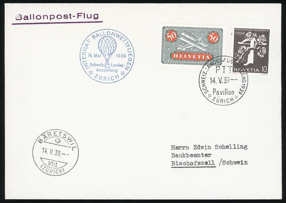 Befördert von Zürich nach Bäretswil mit Ankunftsstempel