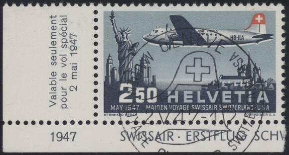 1947, Sonderflugmarke zu 2,50 Fr., aus der linken, unteren Bogenecke