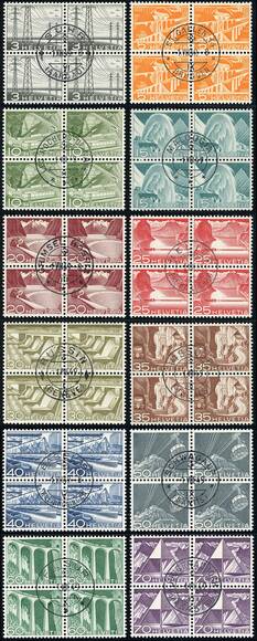 SCHWEIZ 1949 MiNr. 529-540 Viererblocks zentrisch gestempelt