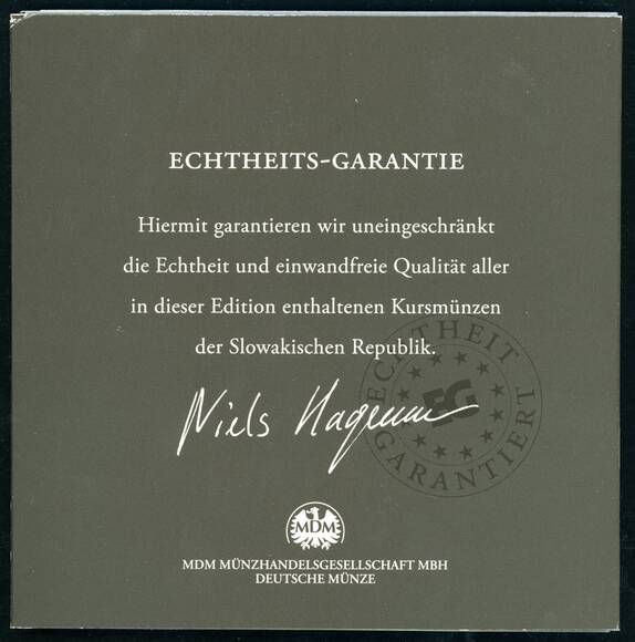 Dazu ein Kursmünzsatz mit den alten Kursmünzen der Slowakei in alter Währung