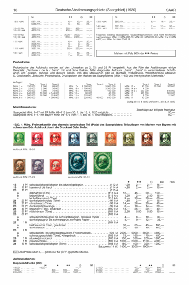 Dank der Mitarbeit der Arbeitsgemeinschaft Saar, werden im neuen Saar-Spezial Katalog nun auch die Postgebühren zwischen 1920 und 1935 für das Saargebiet und Internationale Antwortscheine aufgeführt.