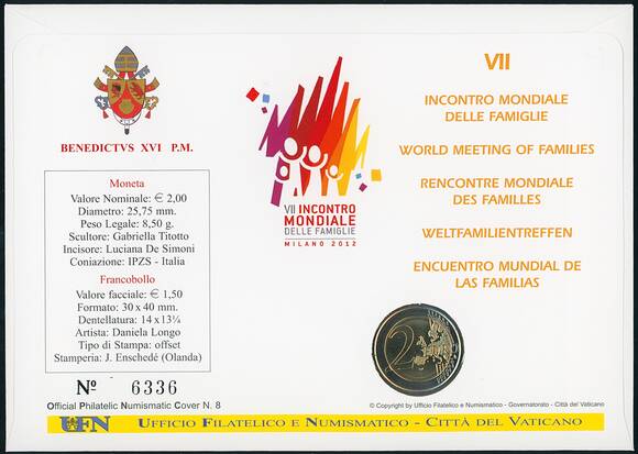 VATIKAN 2 Euro 2012 Weltreffen der Familien im Numisbrief