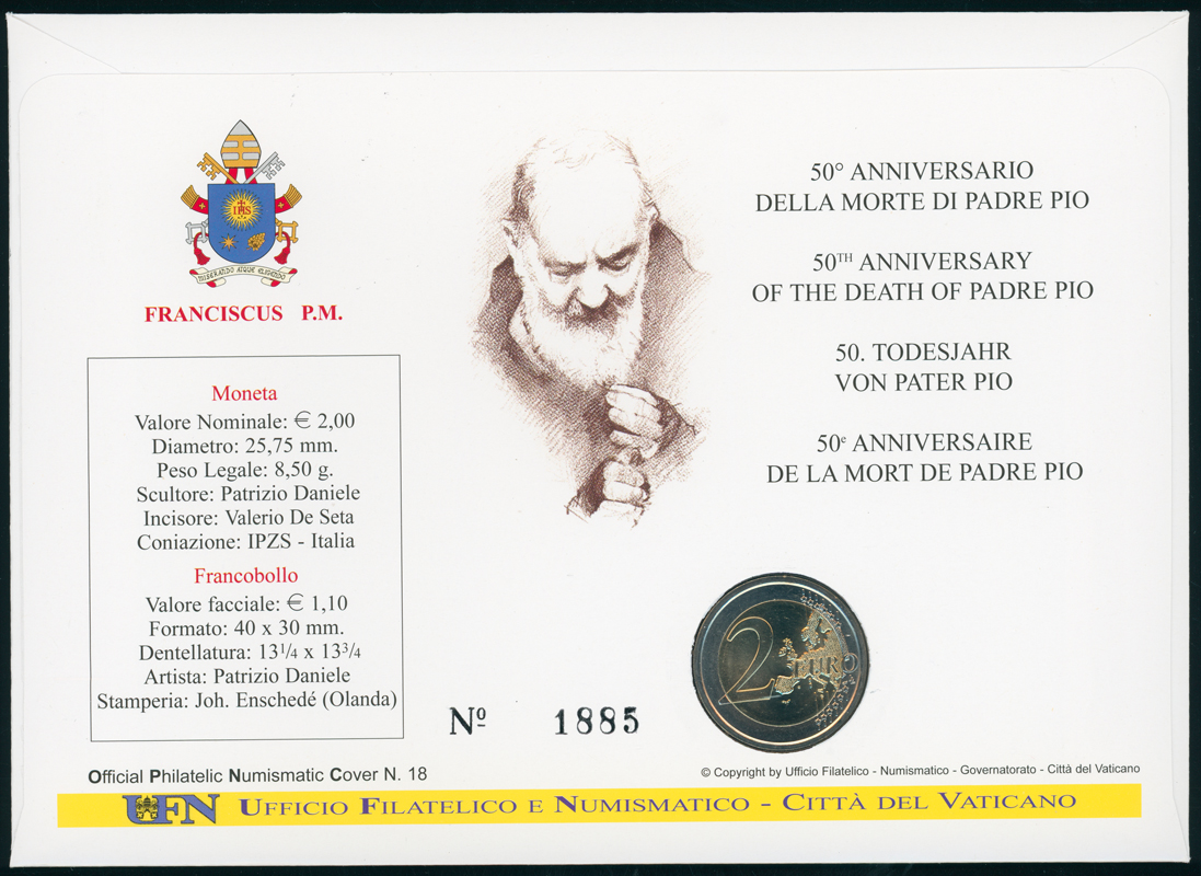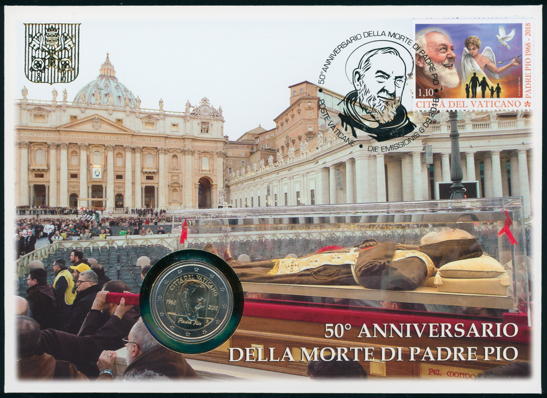 VATIKAN 2 Euro 2018 50. Todestag von Pater Pio im Numisbrief