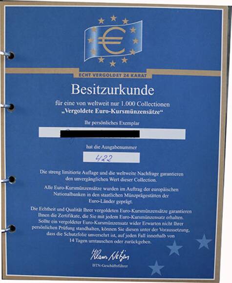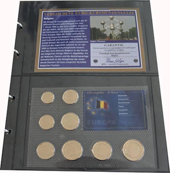 VERGOLDETE EURO-KURSMÜNZSÄTZE Sammlung mit 11 Stück