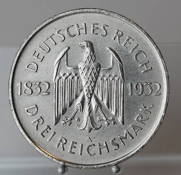 WEIMAR, 3 Reichsmark, 1932 A, Goethe, Jaeger 350