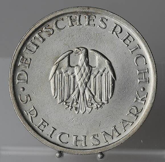 WEIMAR 5 Reichsmark, 1929 A, Lessing, Jaeger 336