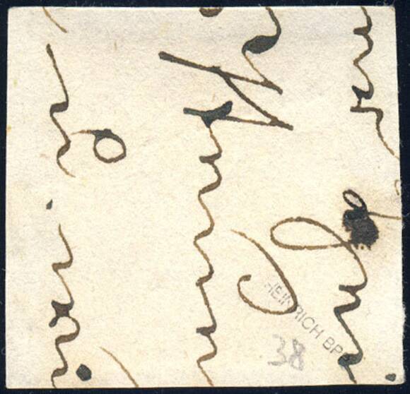 Auf Briefstück, entwertet mit schwarzem Zweizeiler