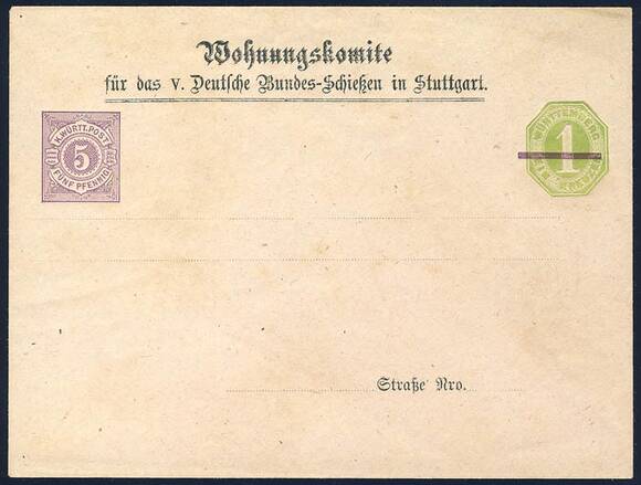1875, Privatganzsachen-Umschlag, 5 Pfg. neben 1 Kr., 'Wohnungskomite für das V. Deutsche Bundes-Schießen in Stuttgart'